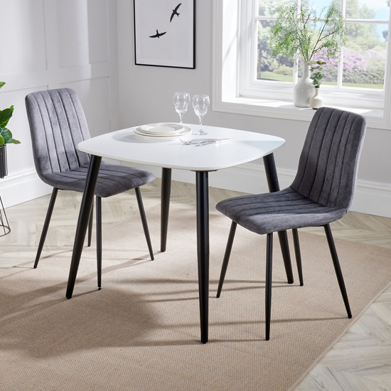 Arta Square White Dining Table And 2 Dark Grey Straight Chairs