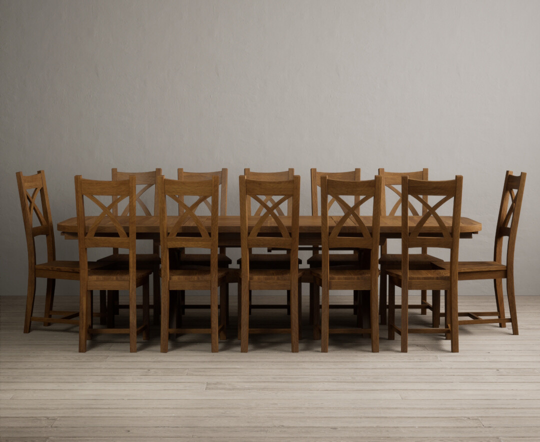Extending Buxton 180cm Rustic Solid Oak Dining Table with 10 Rustic Oak Rustic Solid Oak Chairs