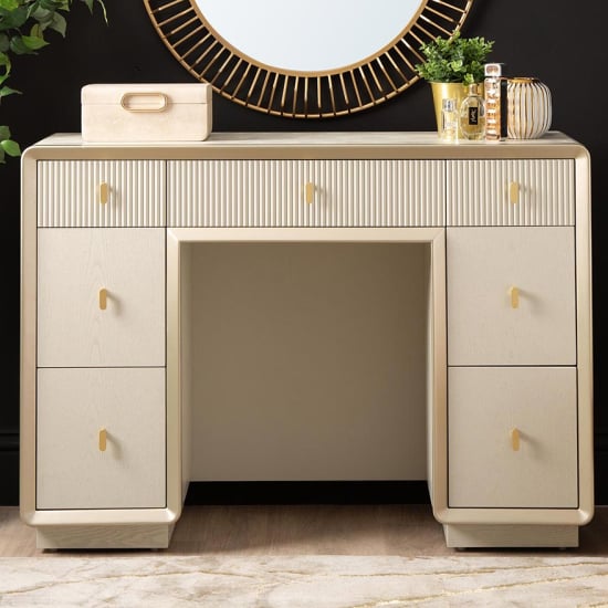 Aveiro Wooden Dressing Table With 7 Drawers In Cream Elm