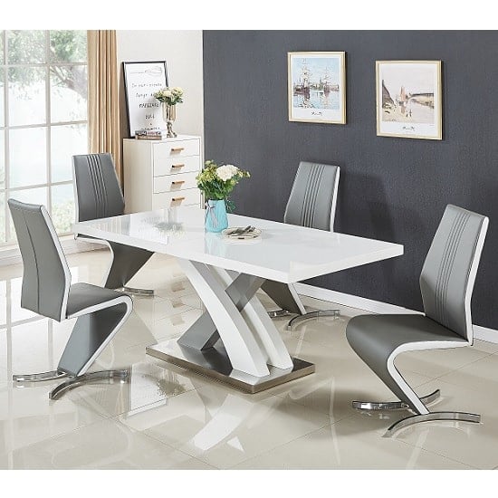 Axara Large Extending Grey Dining Table 4 Gia Grey White Chairs