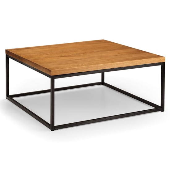 Made from solid oak, this square coffee table offers a rustic finish emphasising the stunning natural wood grain. The Barras Square Coffee Table offers a vintage edge featuring industrial style metal legs. FEATURES : Material : Solid Oak & Gunmetal Finish : Oak, Black Made from solid oak, this square coffee table offers a rustic finish emphasising the stunning natural wood grain The Barras Square Coffee Table offers a vintage edge featuring industrial style metal legs Available at an affordable price Images shown are for illustration purpose only DIMENSIONS : Height : 40cm Width : 90cm Depth : 90cm