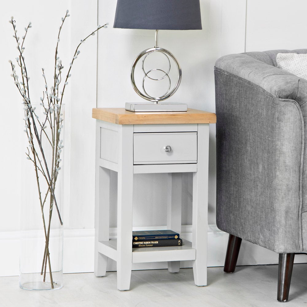 Elkin Wooden Lamp Table With 1 Drawer In Oak And Grey