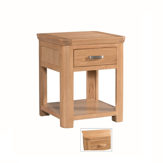Empire Square Wooden End Table With 1 Drawer and Undershelf modern and fresh piece to add in your living room Finish: Solid Oak and Oak Veneer Features: Empire Square Wooden End Table With 1 Drawer and Undershelf Solid Oak and Oak Veneer Stylish and Elegant piece 1 Drawer With a choice of metal and wood handles included Unique curved finish table gives striking look A solid oak and oak veneer with curved edges and dovetailed joints offers a collection that will be the centerpiece of any room setting. Matching Range Furniture also Available Ideal for your Living Room Available at an Affordable Price Dimension: Height: 60cm Width: 50cm Length: 50cm