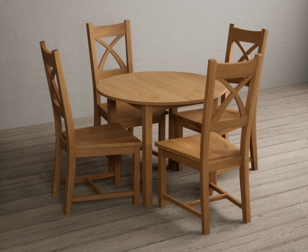 Extending York 90cm Solid Oak Dining Table with 4 Brown Natural Solid Oak Chairs