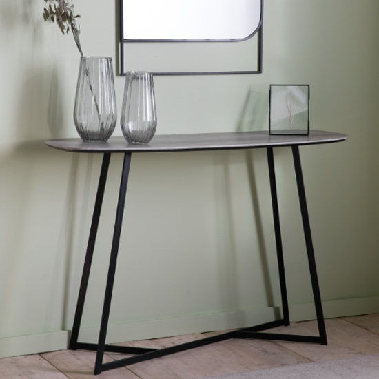 Offering a modern twist to a mid-century look, this lovely console table combines faux light oak with a black metal base with an unusual stepped cross design. FEATURES : Material : MDF, Iron Finish : Natural Matching side and coffee tables are available, and all are also offered with faux white marble tops The collection is part of our Packed-Flat Design Project, offering easy delivery to any room in any property, whilst reducing the packaging needed Easy assembly is required, but all the tools needed are supplied Assembly Required : No Available at an affordable price Images shown are for illustration purpose only DIMENSIONS : Height : 800mm Width : 1200mm Depth : 400mm