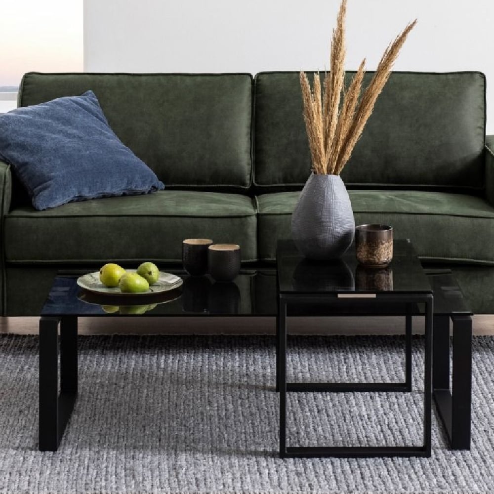 Enhance your living room with the chic and contemporary Keene Smoked Glass Nesting Coffee Table from Furniture in Fashion. This striking piece combines modern design with functional versatility, making it an ideal addition to your home decor. The smoky glass top paired with a sleek black metal frame creates a sophisticated aesthetic that complements various interior styles. The innovative nesting design allows you to maximize your space effortlessly. Use both tables together for entertaining guests or tuck one beneath the other for a minimalist look when not in use. Perfect for displaying decor, books, or serving snacks, the Keene coffee table set is a stylish solution for any living room. Upgrade your living space with the stunning Keene Smoked Glass Nesting Coffee Table by Furniture in Fashion, where elegance meets practicality. FEATURES : Material : Smoked Glass ,Metal Finish : Black Modern design Contrasting elements bringing visual interest Smoked and tempered glass Elegant smoked glass top adds a touch of sophistication Durable black metal frame ensures long-lasting support Nesting design for easy storage and space-saving Perfect for small living rooms or modern apartments Easy to maintain with a simple wipe-clean surface Lightweight construction for easy rearrangement Available at an affordable price Images shown are for illustration purpose only DIMENSIONS : Height : 45cm Width : 115cm Depth : 69cm