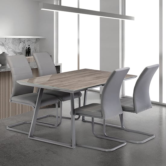 Michton Grey Oak Glass Top Dining Table With 4 Chairs