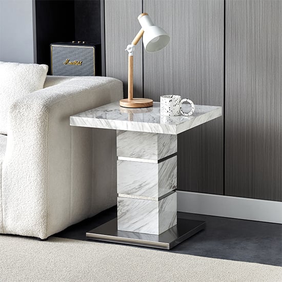 Parini High Gloss Lamp Table Square In Magnesia Marble Effect