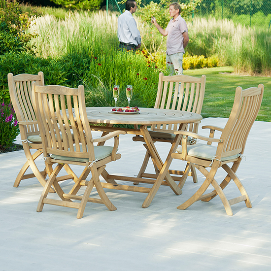 Provides some of the most beautiful garden furniture available in a selection of contemporary and traditional designs. Manufactured at our own factory in Bolivia, this timber is extremely durable, has light yellow interlocking grain, and these warm natural tones blend in perfectly with any outdoor space. The traditional pedestal table and recliners have been an iconic design now for over 20 years, which is testament to its elegance, timeless sophistication, and quality craftsmanship. Whether you have got your eye on one of the Robalt dining or lounge sets, you can rest assured that this range of wooden garden furniture scores highly when it comes to durability. The impressive Robalt tree grows very slowly and takes over 100 years to reach full maturity! FEATURES : Material : Timber Wood Finish : Natural Set Includes : 1 Dining Table, 4 Armchairs, 4 Chair Cushion 100% FSC certified Warm natural tones blend in perfectly with any outdoor space Timeless sophistication and quality craftsmanship You can rest assured that this range of wooden garden furniture scores highly when it comes to durability 4 x 563OAT – Chair cushions are included Available at an affordable price Images shown are for illustration purpose only DINING TABLE DIMENSIONS (145) : Height : 740mm Width : 1300mm Depth : 1300mm DINING CHAIR DIMENSIONS (6 x 108) : Height : 1050mm Width : 570mm Depth : 640mm