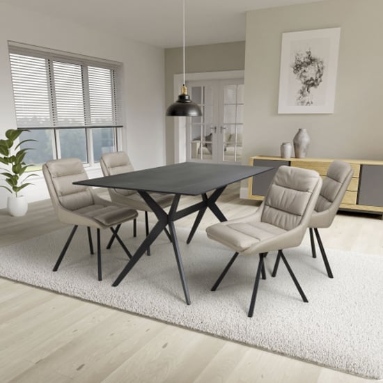 Tarsus 1.6m Black Dining Table With 4 Addis Cream Chairs