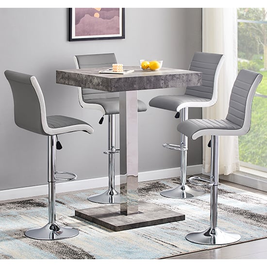 Topaz Concrete Effect Bar Table With 4 Ritz Grey White Stools