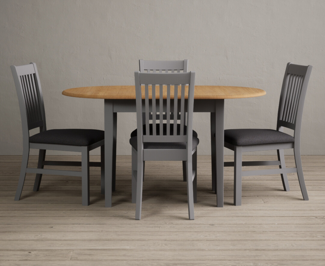 Extending Warwick Oak and Light Grey Painted Dining Table with 4 Charcoal Grey Warwick Chairs