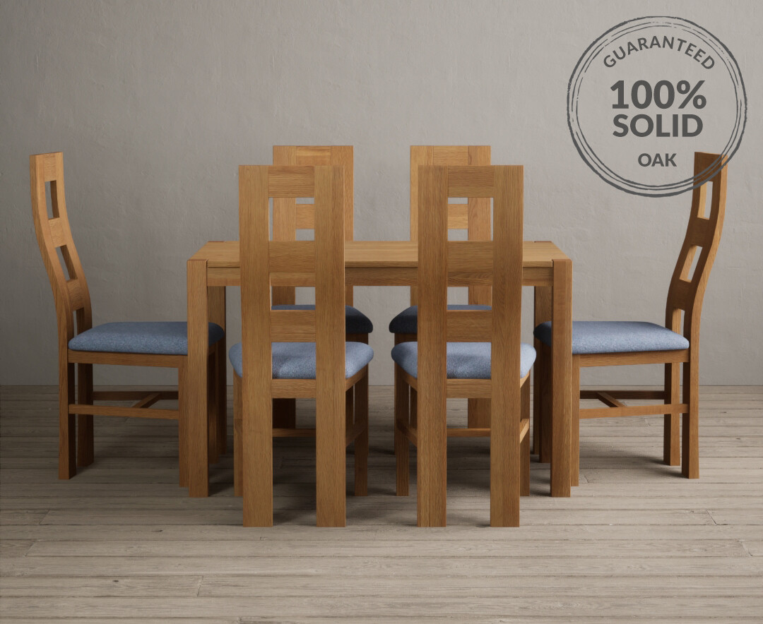 York 120cm Solid Oak Dining Table with 6 Blue Natural Chairs