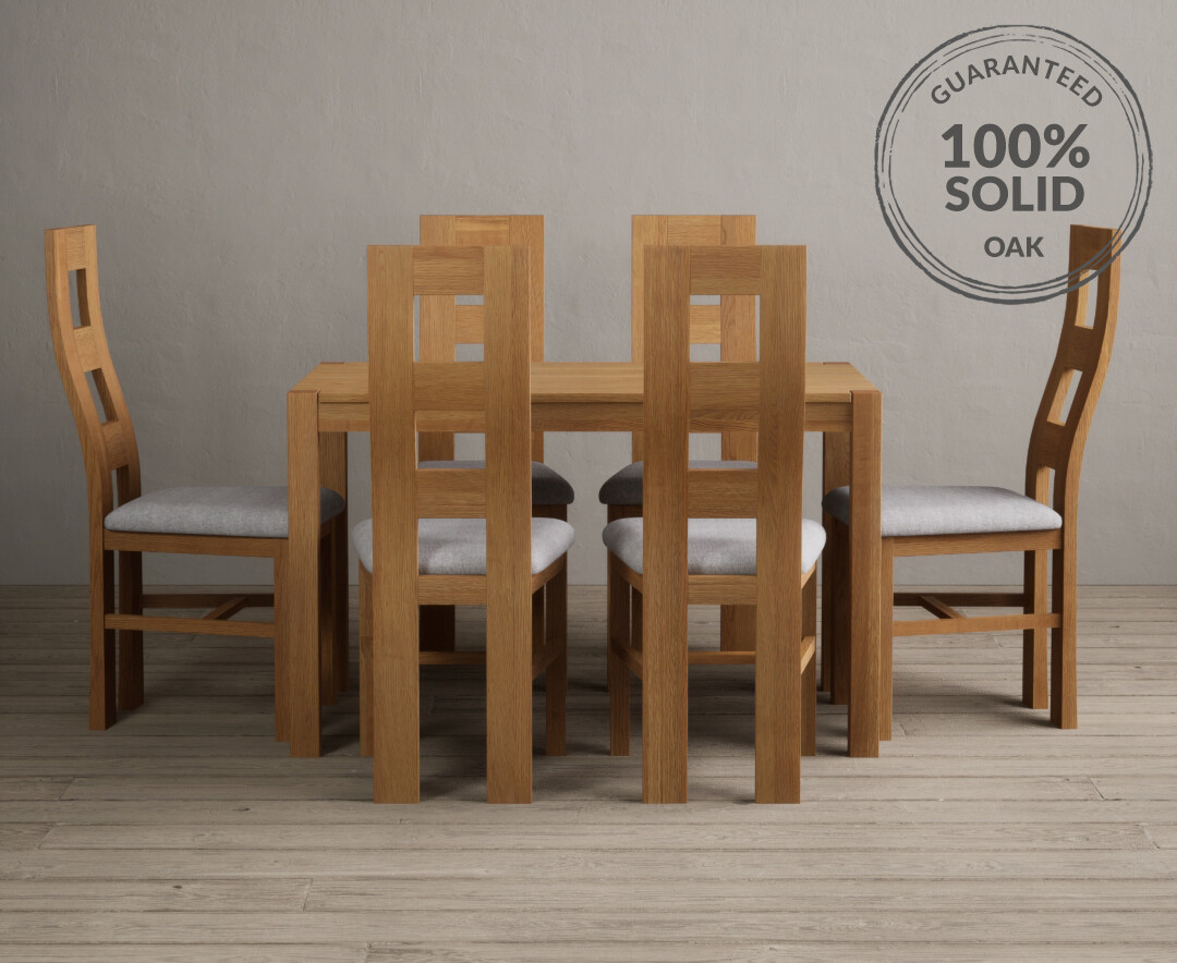 York 120cm Solid Oak Dining Table With 6 Light Grey Flow Back Chairs