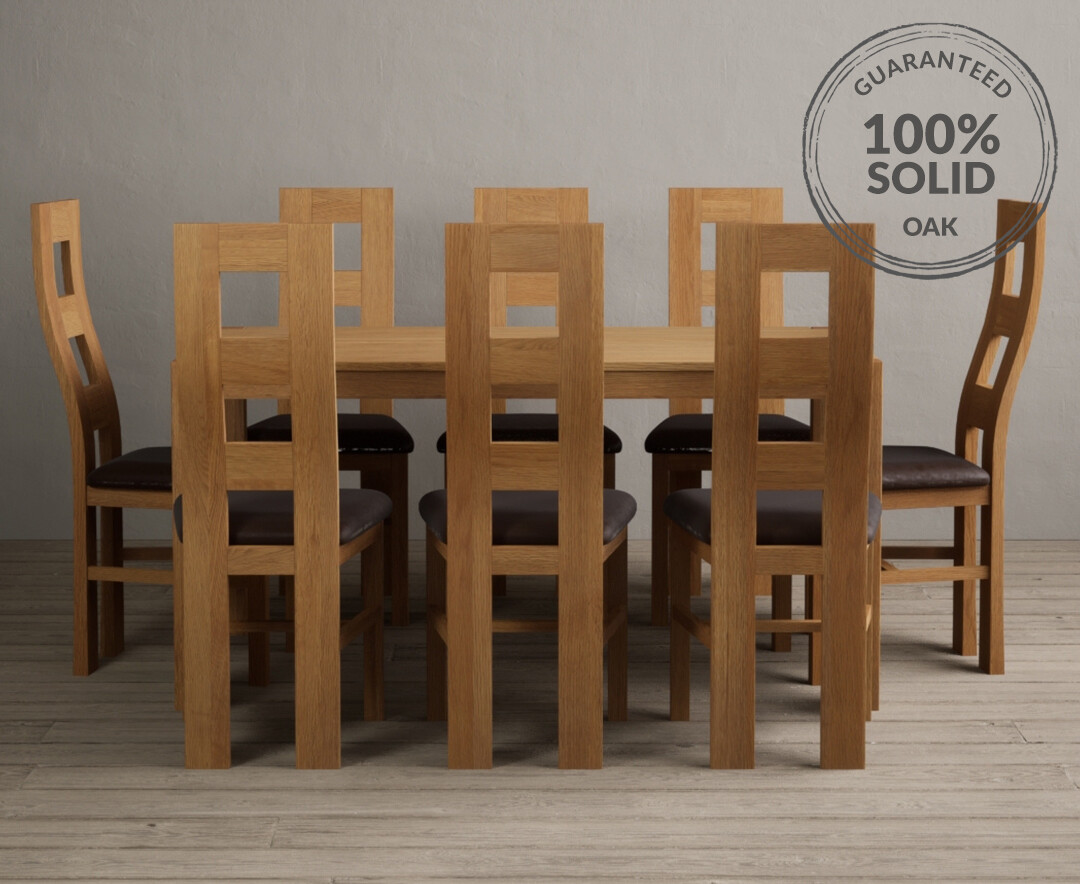 York 150cm Solid Oak Dining Table with 8 Brown Natural Chairs